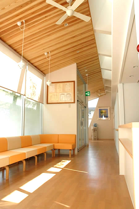木の暖かさと心地よい光のなかでお待ちいただけます。ウォーターサーバーを用意しておりますので、どうぞお飲みください。